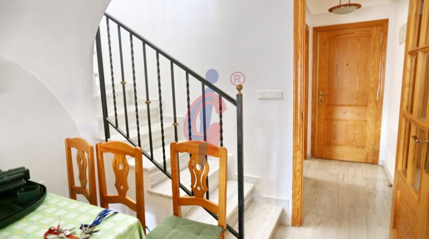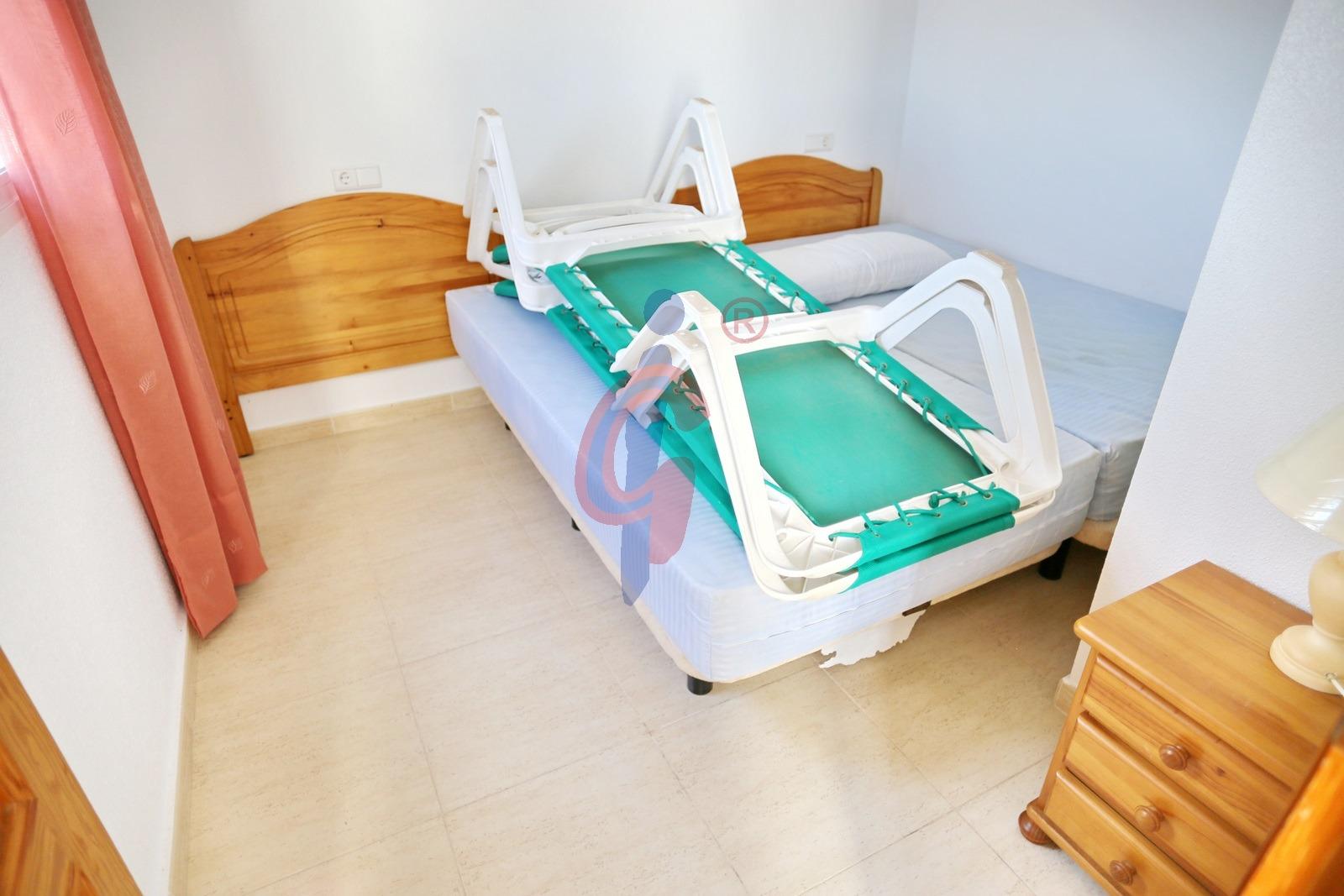 La vivienda se distribuye en dos plantas. En la primera planta encontramos una cocina independiente totalmente equipada, con ventana a patio interior; un salón-comedor amplio y muy luminoso, con aire acondicionado, amueblado y con salida directa a una acogedora terraza orientada al sur; además de un cuarto de baño completo con bañera y dos dormitorios con armarios empotrados. En la segunda planta se ubica un tercer dormitorio también con armario empotrado, un baño con ducha y un espectacular solárium privado, amplio y soleado, con unas vistas despejadas al mar que invitan a relajarse y disfrutar del clima mediterráneo durante todo el año.