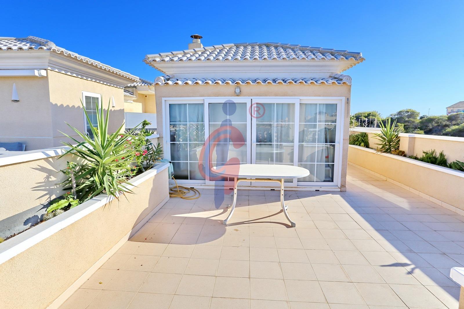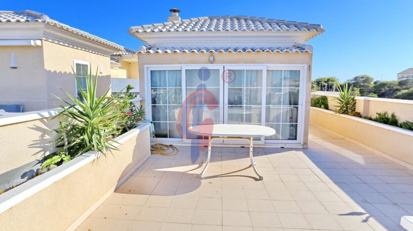 En la planta superior se encuentra un solárium privado con cocina exterior totalmente equipada, ideal para cenas al aire libre, reuniones con amigos o simplemente para relajarse contemplando las vistas despejadas al mar y a la piscina.