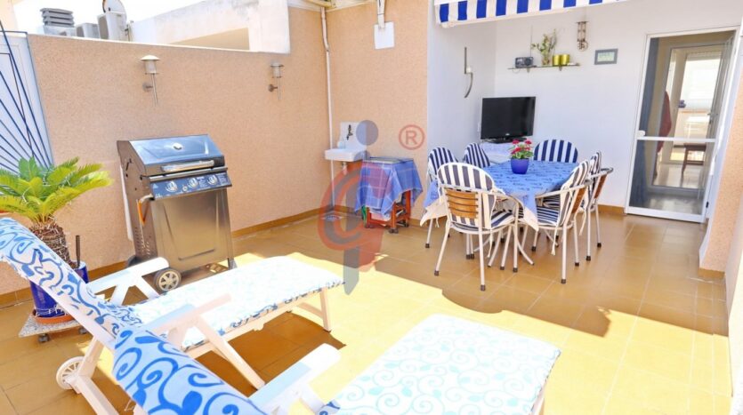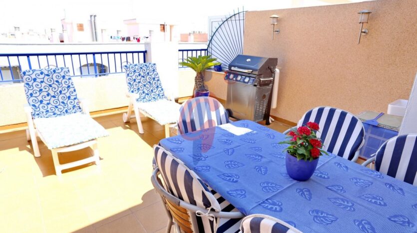 En la planta de arriba, donde tiene ubicado el tercer dormitorio tiene un solárium con preciosas vistas despejadas al mar de fondo y a la montaña con toldo instalado, otro solárium con orientación sur donde se puede tomar el sol o tender ropa para su secado natural y junto al dormitorio un gran trastero.