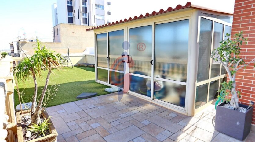 – Ático dúplex orientado al Este y al Oeste con 3 dormitorios, 3 cuartos de baño completos, un amplio solárium con vistas panorámicas y dos terrazas acristaladas, una al este y otra al oeste, para poder disfrutar de ellas en diferentes horarios y estaciones del año.