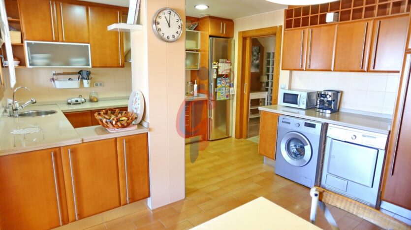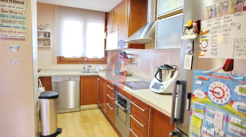 – Cocina independiente con mucho espacio en los armarios y encimera, incluidos los electrodomésticos instalados, además tiene una puerta con salida a una de las terrazas acristaladas.