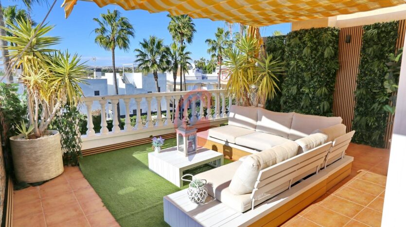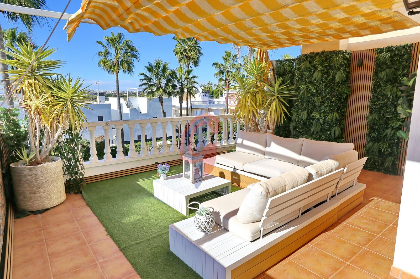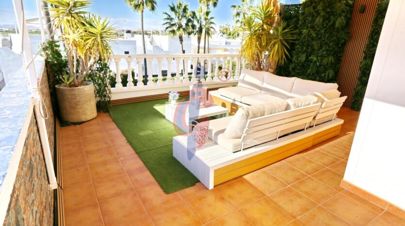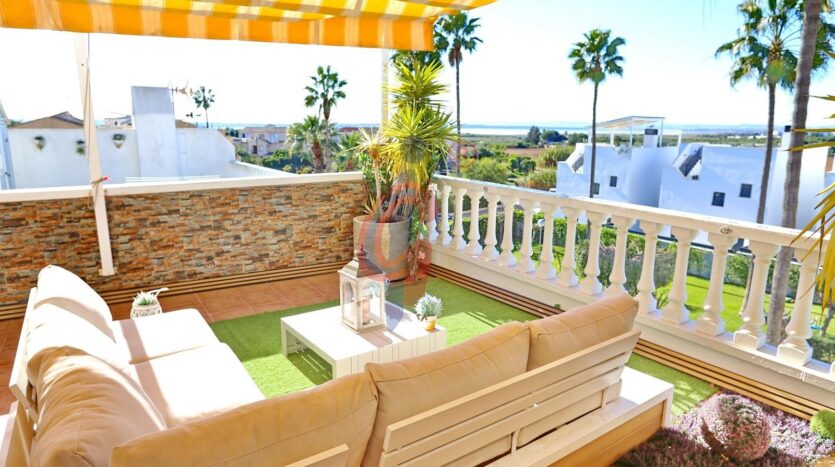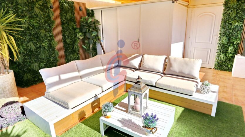 – Gran terraza en la primera planta y solárium privado con zona chill out en la segunda, con vistas a la urbanización, zonas verdes y piscinas.