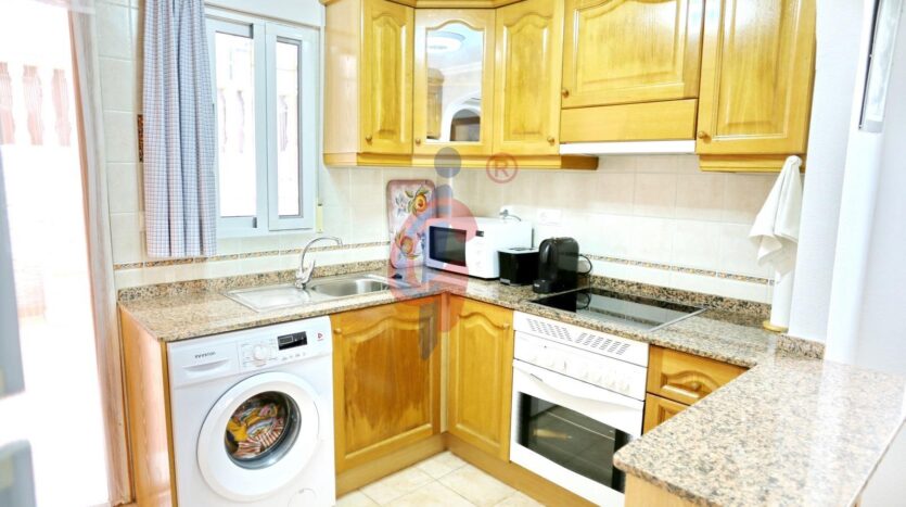 La cocina esta completa y con todos los electrodomésticos instalados.