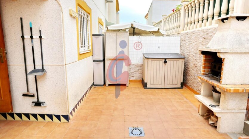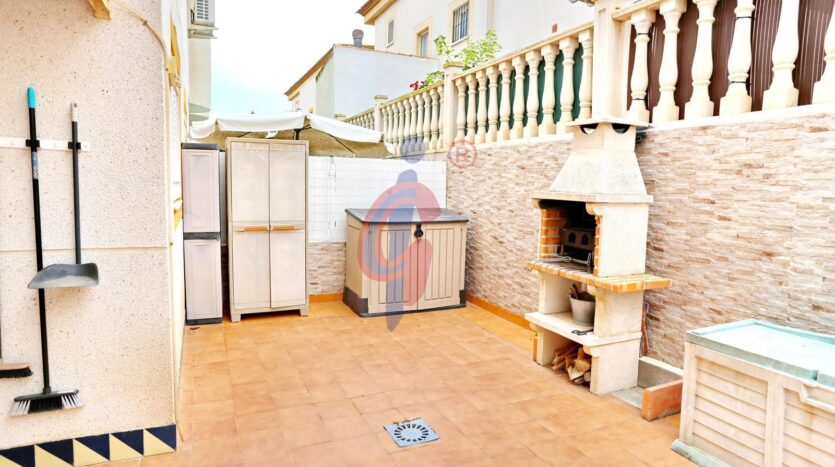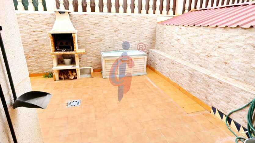 La vivienda cuenta con patio delantero suficientemente grande como para poder aparcar tu coche, otro patio trasero como terraza con barbacoa y armarios de almacenaje.