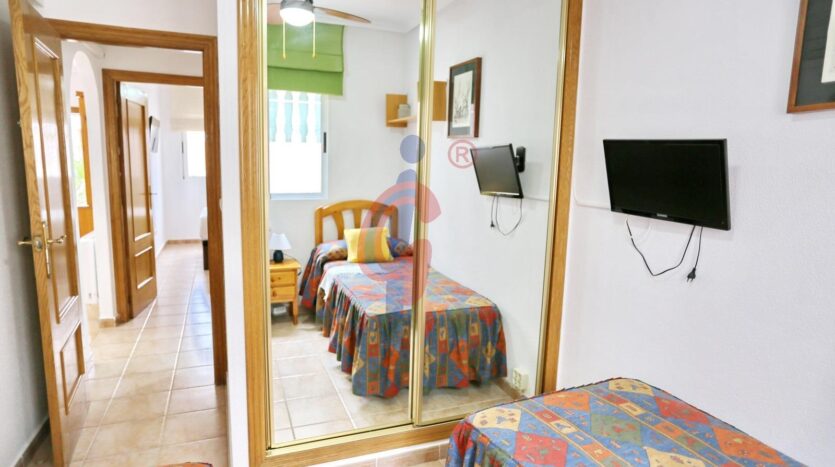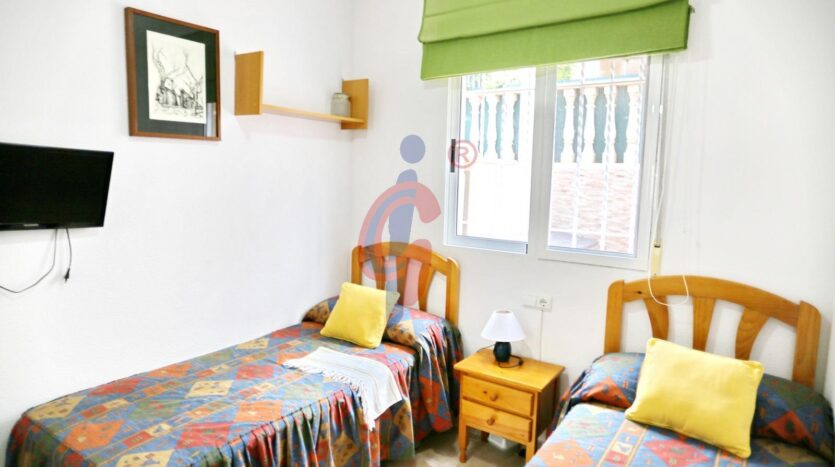 La vivienda tiene 2 dormitorios. Ambos con armarios empotrados con lunas de espejo, ventanas al exterior y espacio suficiente para una cama de matrimonio. En uno tiene una cama de matrimonio que da al patio delantero y en el otro dormitorio hay dos camas individuales.