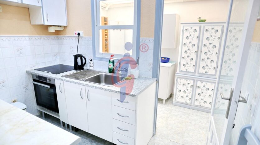 El interior se distribuye en un luminoso salón con aire acondicionado, una cocina totalmente equipada y una galería cubierta que aporta funcionalidad adicional.