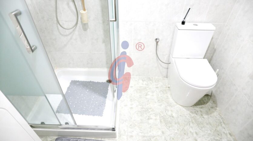 Dispone de dos dormitorios: uno individual con ventana a la galería y otro principal con dos camas individuales. El baño es amplio y está equipado con plato de ducha.