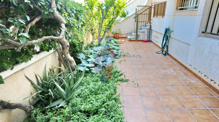 La propiedad, orientada al este y al sur, dispone de un espacioso salón-comedor con aire acondicionado, dos dormitorios con armarios empotrados, un cuarto de baño reformado con ducha, una cocina totalmente equipada y una galería exterior. Destaca por su amplia terraza, a dos alturas, y con un jardín que cuenta incluso con plantas de calabazas, ideal para disfrutar del clima mediterráneo durante todo el año.