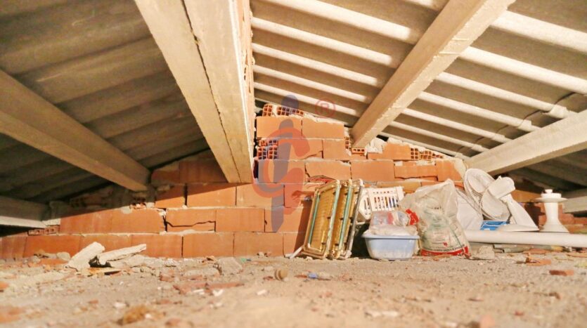 La vivienda se distribuye en una sola planta y ofrece grandes posibilidades de ampliación, con opción de construir hasta dos o incluso tres alturas adicionales. Actualmente, dispone de una amplia terraza, salón-comedor, cocina independiente con acceso a galería, dos dormitorios (uno con orientación oeste y otro con orientación este) y un baño completo. Además, cuenta con una buhardilla que aporta espacio adicional.