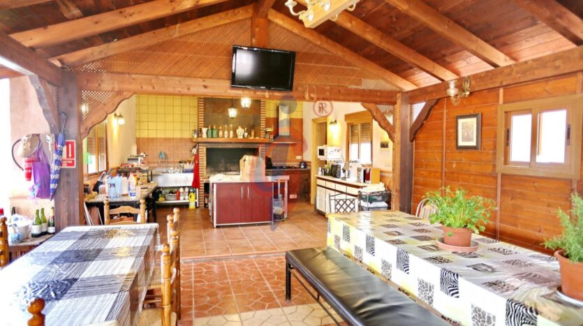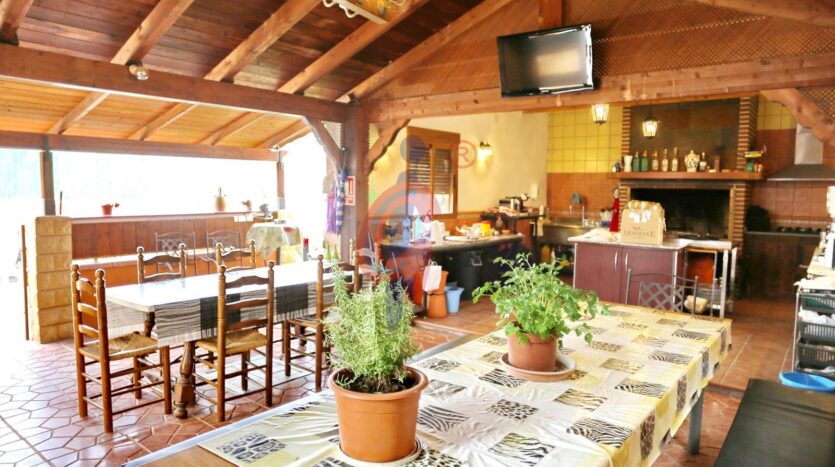 En la zona exterior, encontrarás espacios multifuncionales donde podrás realizar todo tipo de actividades, tanto para adultos como para niños. Si solo deseas disfrutar de una comida con amigos, la zona de barbacoa cuenta con todo lo necesario, junto al aseo y al lado de la piscina, creando el ambiente perfecto para relajarse bajo el sol.