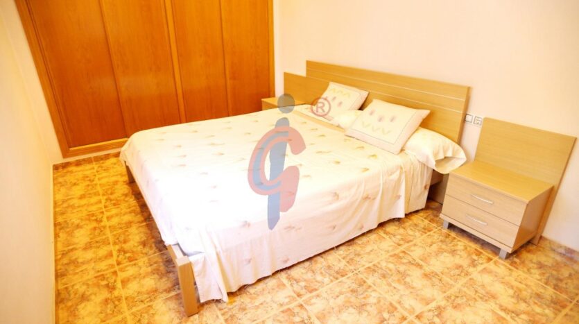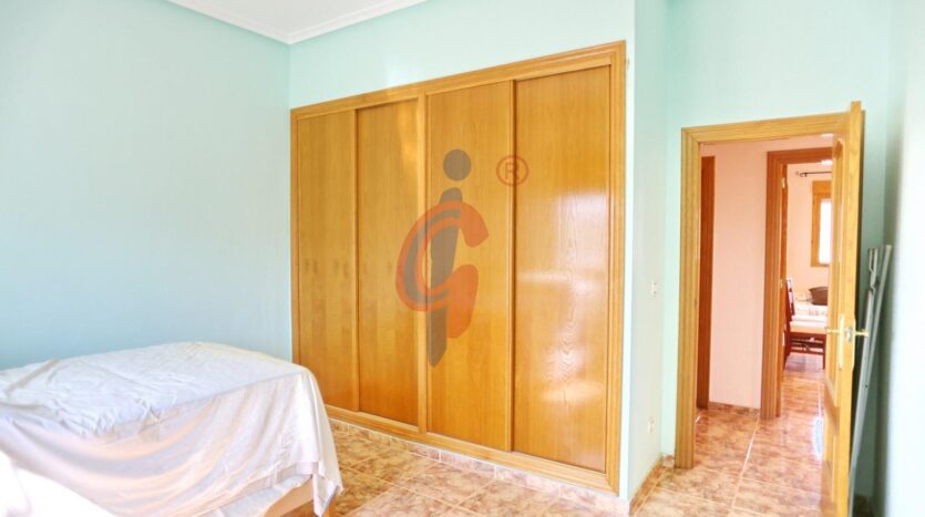 El inmueble cuenta con tres dormitorios dobles, todos con armarios empotrados. Dos de ellos están orientados al este y el tercero al sur. El baño principal es amplio y está equipado con ducha, lavabo, bidé, inodoro y ventana para una correcta ventilación.