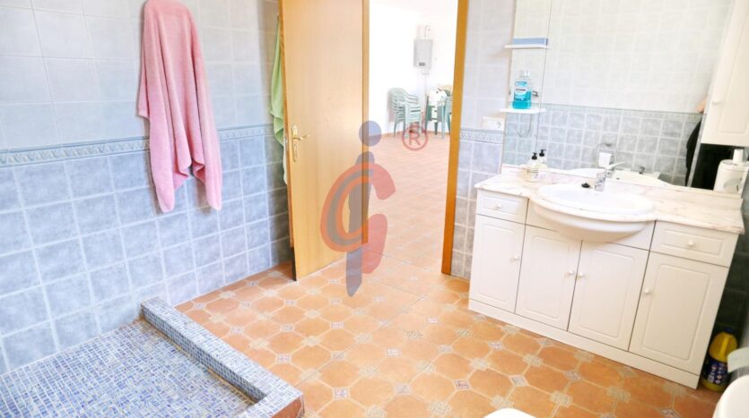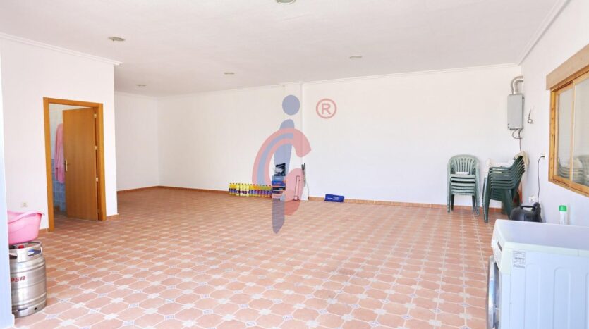 Una cochera cerrada de gran capacidad (para dos vehículos), que incorpora un segundo baño completo con ducha.