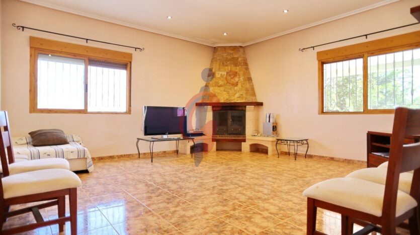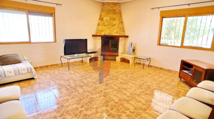 La vivienda principal dispone de una amplia terraza de acceso, ideal para disfrutar del clima mediterráneo. Al ingresar, encontramos un espacioso salón-comedor con chimenea y orientación oeste, lo que garantiza una excelente luminosidad durante la tarde. La cocina es independiente, de generosas dimensiones, totalmente equipada con electrodomésticos y también orientada al oeste.