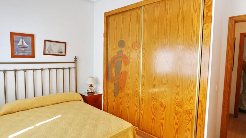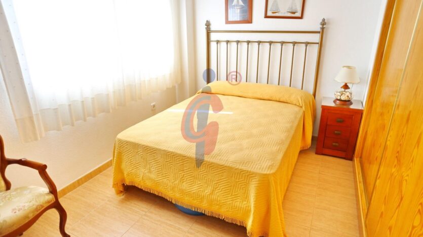 – Dormitorio principal con cama de matrimonio, armario empotrado y ventana luminosa.