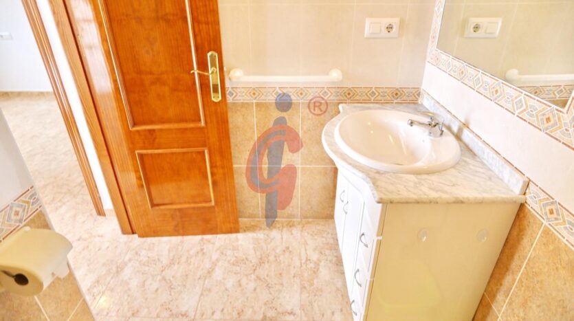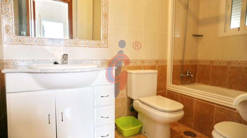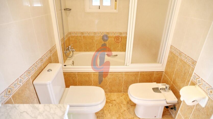 Subiendo a la planta superior, descubrirás un segundo dormitorio también con aire acondicionado y armario empotrado, orientado al este, un segundo baño completo con ducha, y una amplia terraza solárium donde relajarte con vistas despejadas.