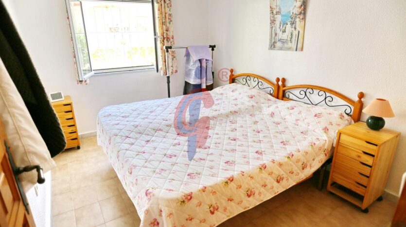 Al acceder al interior, nos recibe un luminoso salón-comedor amueblado, que distribuye la vivienda de manera funcional. Los dos dormitorios, así como los cuartos de baño, se encuentran a ambos lados del salón, ofreciendo máxima privacidad. La vivienda dispone de dos baños completos, uno con ducha y otro con bañera.