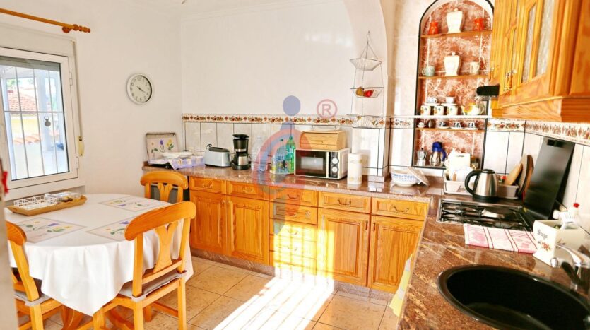 La cocina independiente, amplia y completamente equipada, cuenta con salida directa a la parte trasera de la vivienda y dispone de una galería adicional.