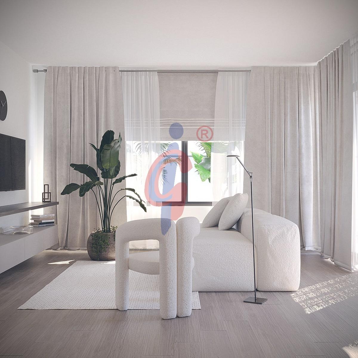 La vivienda dispone de tres amplios dormitorios y cuatro baños completos, todos ellos distribuidos para aprovechar al máximo la luz natural y mantener un ambiente sereno en cada estancia. La cocina está totalmente equipada con electrodomésticos de alta gama, mientras que los baños presentan acabados de primera calidad, reflejando un cuidado exquisito por los detalles. La villa se entrega sin amueblar, ofreciendo la posibilidad de personalizar su interior al gusto del propietario.