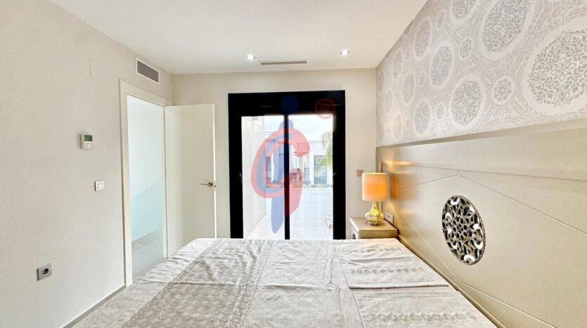 En su interior ofrece una distribución moderna y funcional con tres dormitorios. Un dormitorio se encuentra en la planta principal. Los otros dos se encuentran en la primer planta, y uno de ellos cuenta con vestidor. El chalet tiene dos baños completos, ambos con plato de ducha, y un cuarto de aseo. El confort está garantizado gracias al aire acondicionado y al suelo radiante en toda la vivienda, proporcionando una temperatura ideal en cualquier estación.