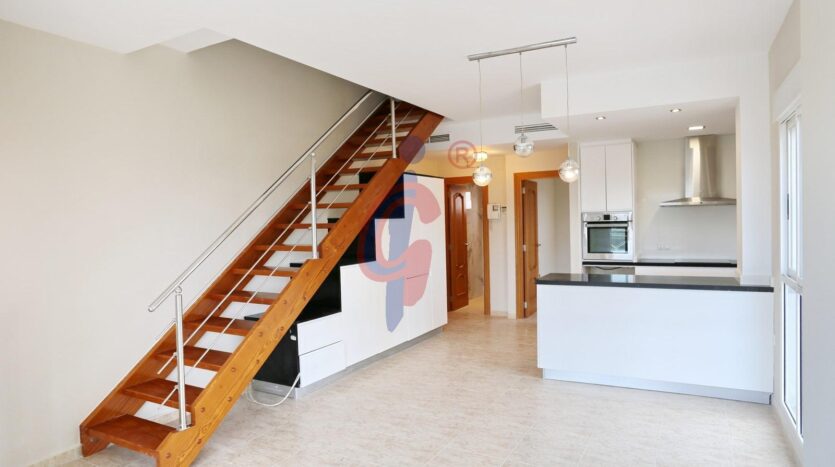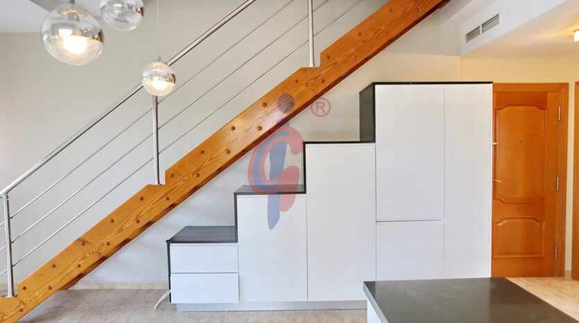 -Cocina integrada en el salón comedor, reformada y equipada, armarios debajo de la escalera con gran capacidad de almacenaje, termo eléctrico para agua caliente. Salón-comedor con salida a terraza. Recibidor luminoso.