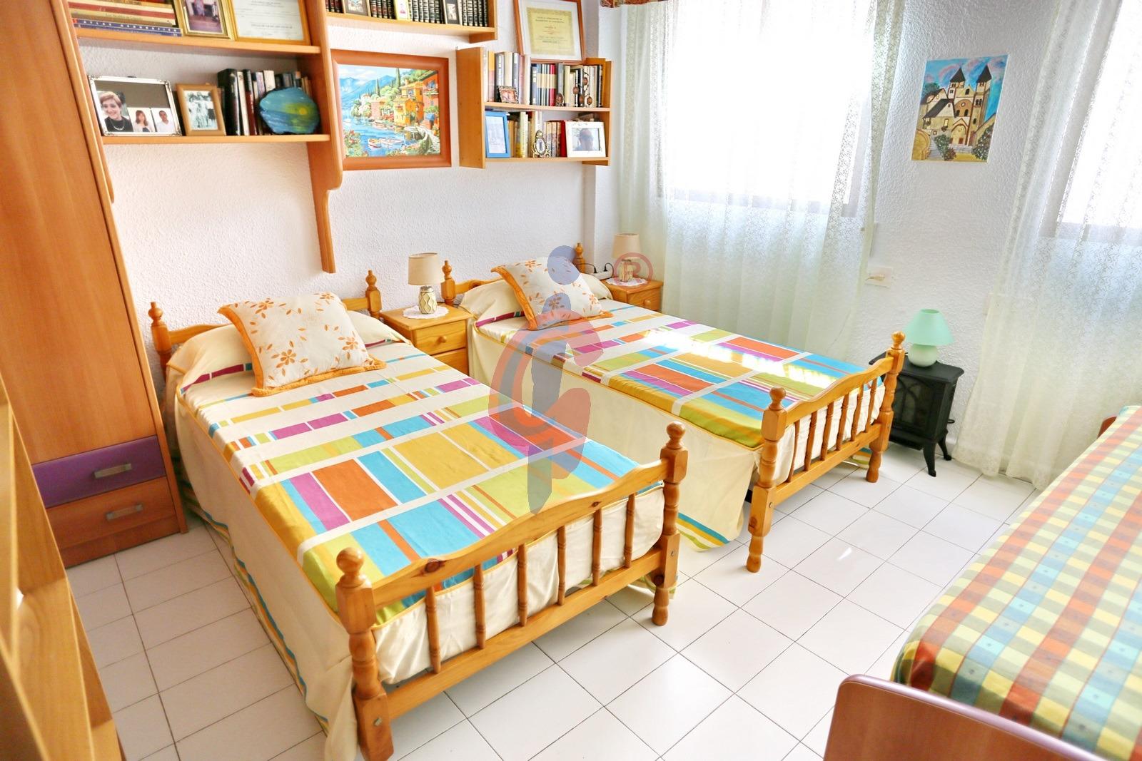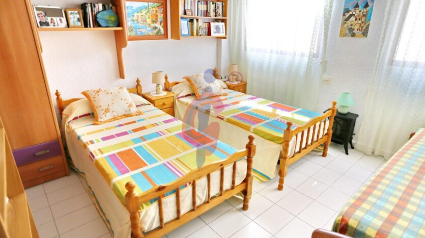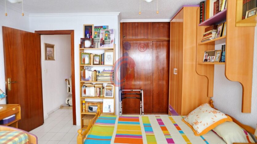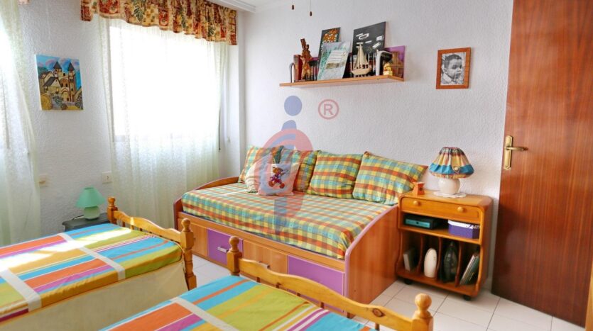 – Amplio dormitorio doble con tres camas individuales, armario empotrado y ventana a patio interior.