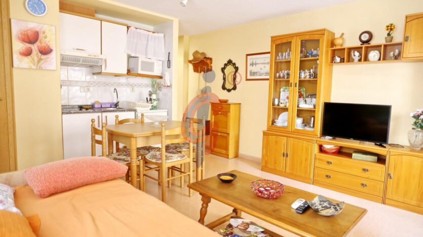 CGI Inmobiliaria pone a la venta este acogedor estudio ubicado en el Edificio Colonia Bueno, en una segunda planta con orientación sur, ideal para disfrutar del sol durante todo el año. Situado a tan solo 50 metros de la playa, es una excelente oportunidad tanto como residencia vacacional como inversión.