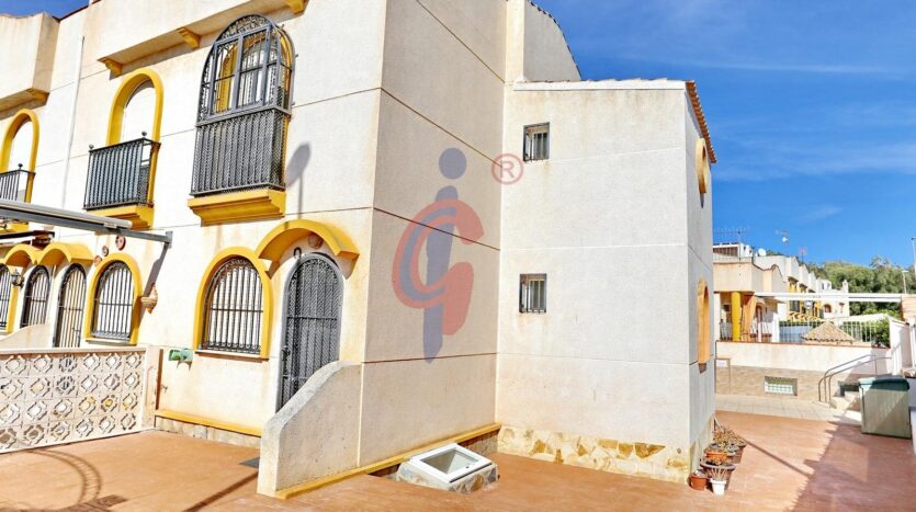 Este encantador bungalow pareado, estratégicamente ubicado a tan solo 500 metros de la playa, en una esquina con una parcela de 105 metros cuadrados, ofrece un estilo de vida excepcional en una apacible zona a las afueras de Guardamar. Con orientaciones al este, norte y sur, esta vivienda disfruta de una excelente iluminación natural durante todo el día.