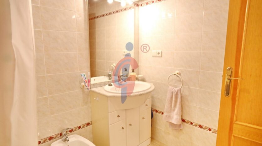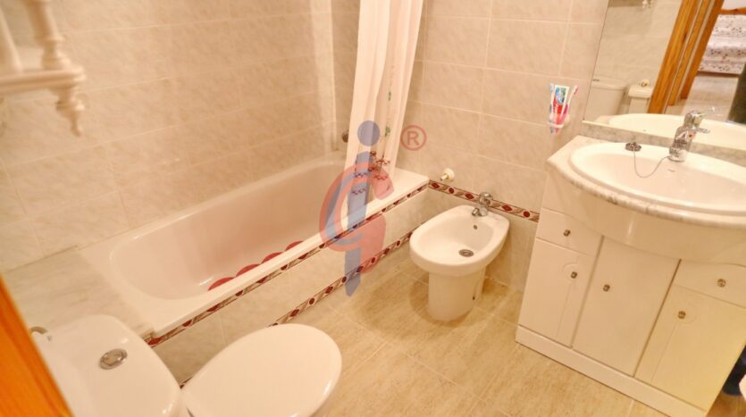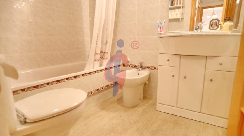 – Cuarto de baño amplio, completo con bañera y mueble empotrado debajo del lavabo.