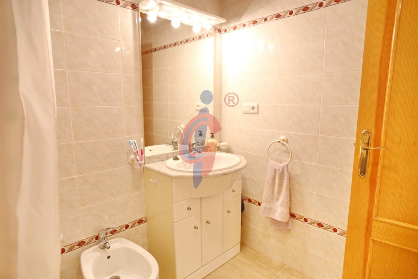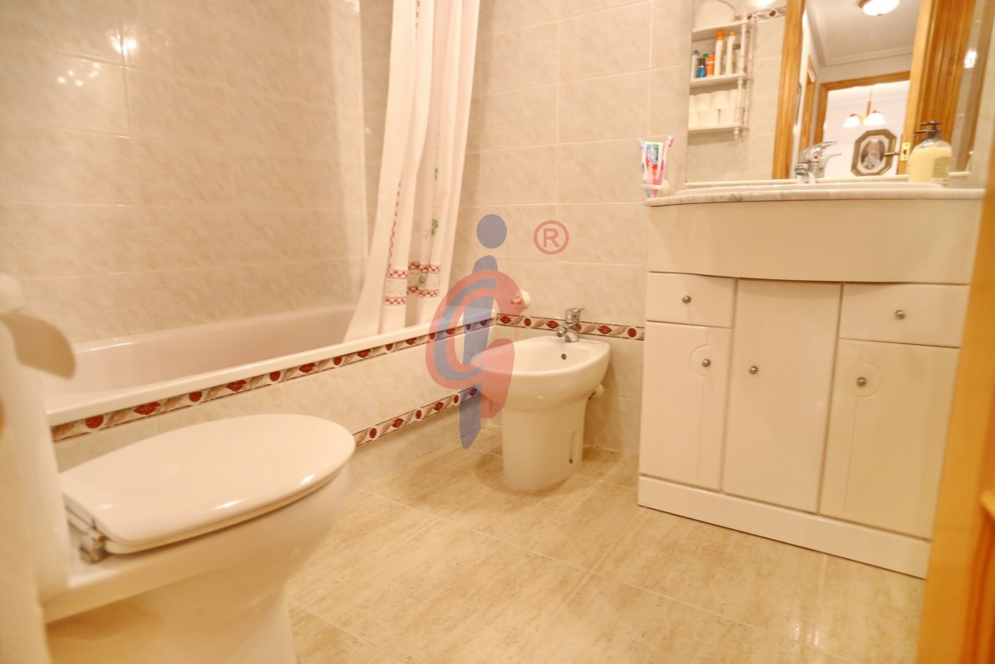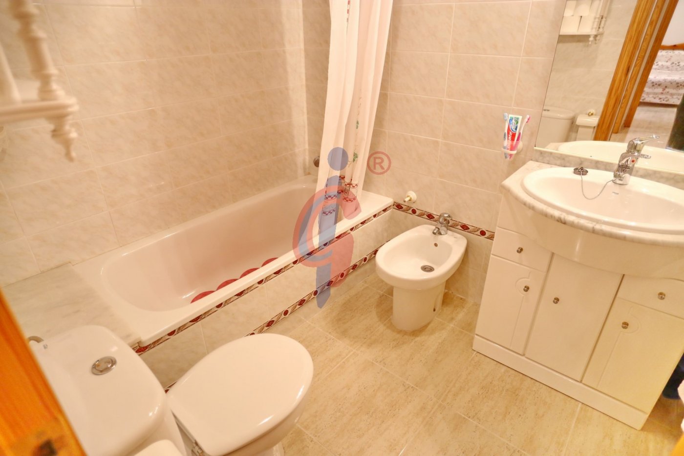 – Cuarto de baño amplio, completo con bañera y mueble empotrado debajo del lavabo.