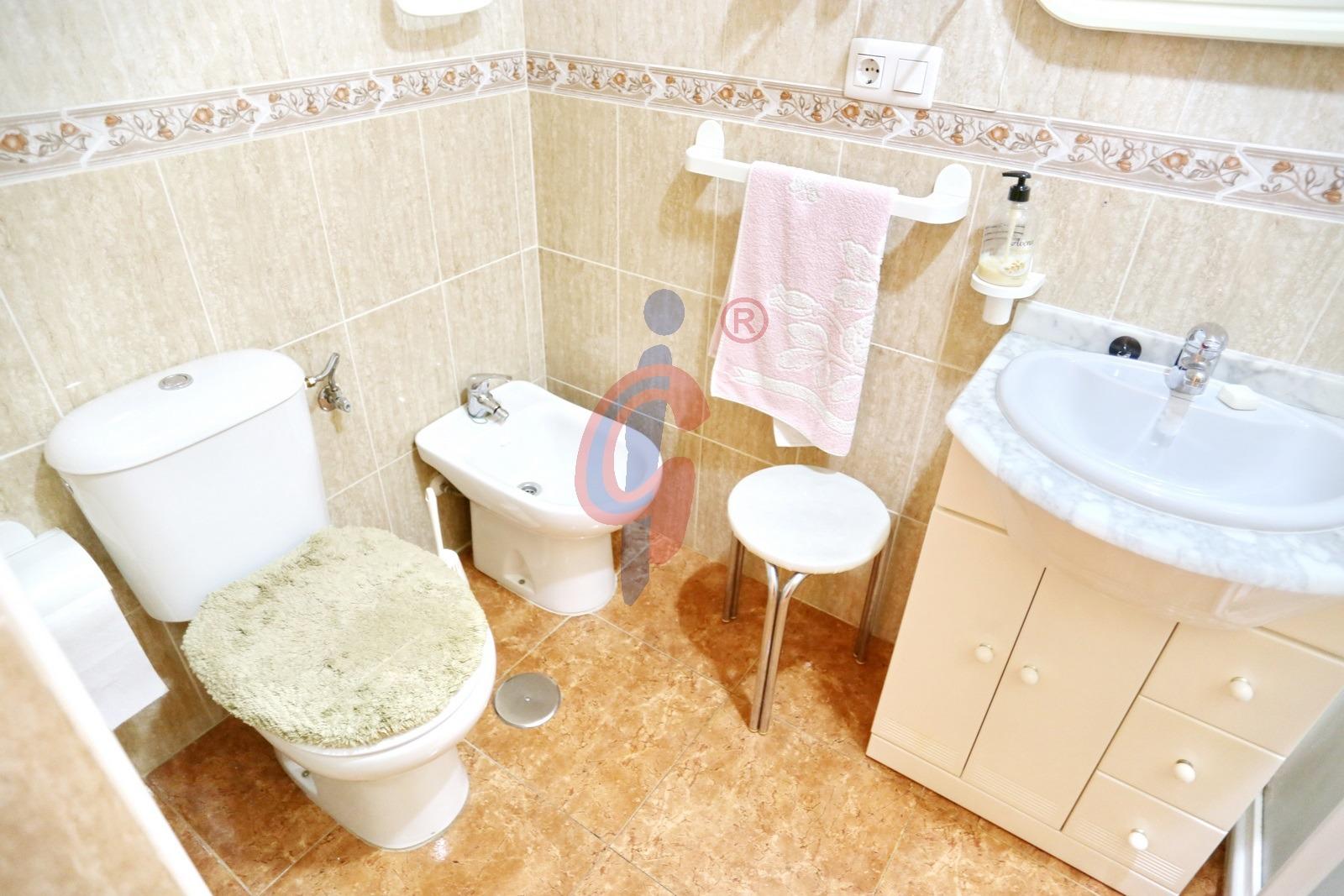 * Baño completo con ducha, lavabo, inodoro, bidé y mueble auxiliar para almacenaje.