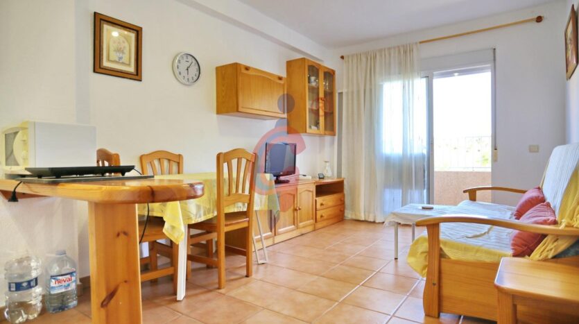 La vivienda se encuentra en el Edificio Guardamar, en una cómoda segunda planta con ascensor y orientación sur, lo que garantiza luminosidad durante todo el día. El salón-comedor con cocina integrada ofrece un espacio moderno y funcional, completamente amueblado y con cocina equipada. Desde el salón se accede a una terraza con vistas despejadas, perfecta para disfrutar del clima mediterráneo. Dispone de un dormitorio con cama doble y un baño completo con plato de ducha. Se vende totalmente amueblado, listo para entrar a vivir.