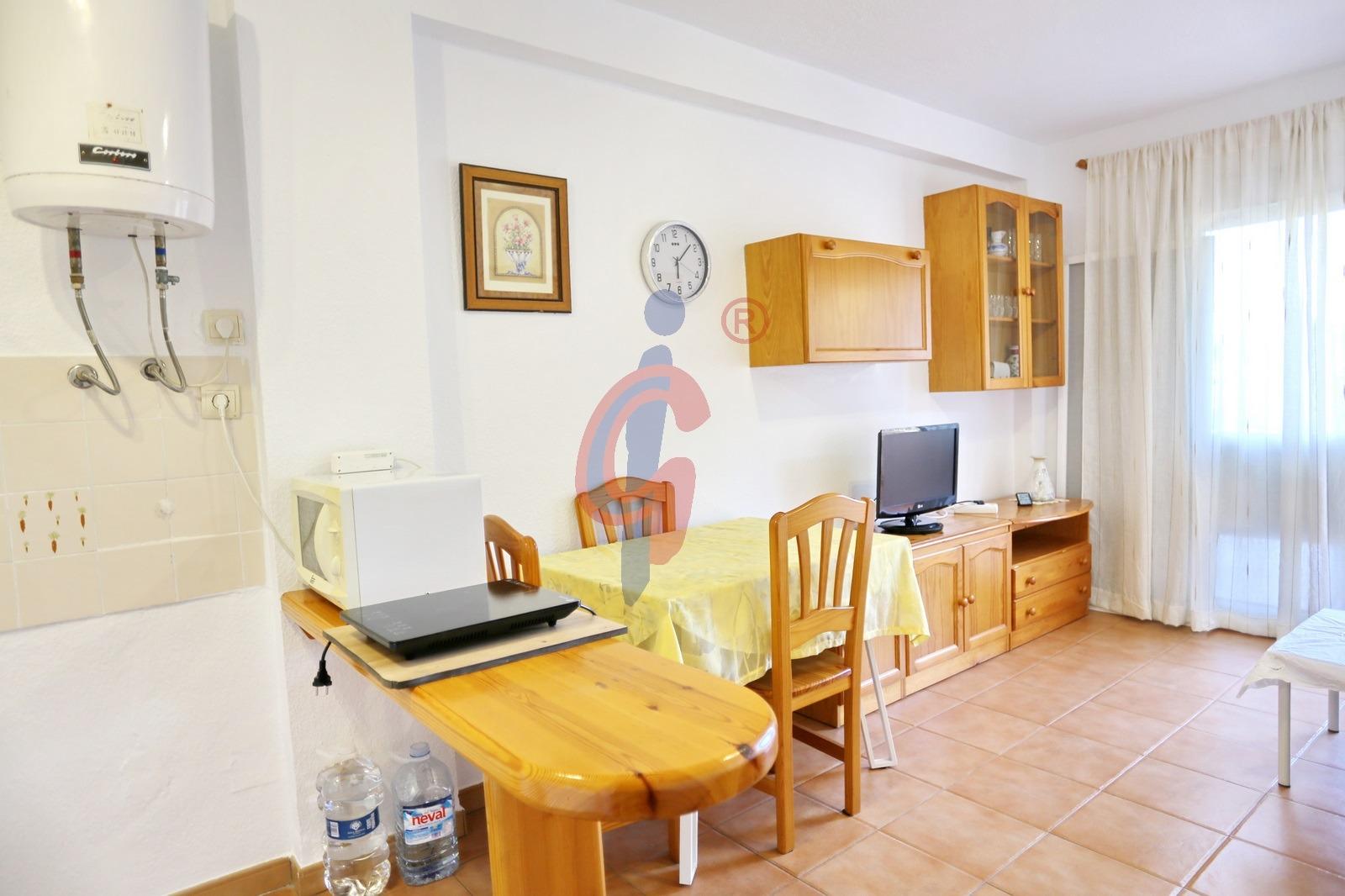 La vivienda se encuentra en el Edificio Guardamar, en una cómoda segunda planta con ascensor y orientación sur, lo que garantiza luminosidad durante todo el día. El salón-comedor con cocina integrada ofrece un espacio moderno y funcional, completamente amueblado y con muebles de cocina. Desde el salón se accede a una terraza con vistas despejadas, perfecta para disfrutar del clima mediterráneo. Dispone de un dormitorio con cama doble y un baño completo con plato de ducha. Se vende totalmente amueblado, listo para entrar a vivir.