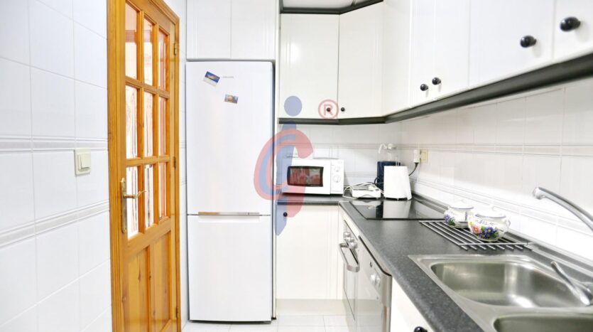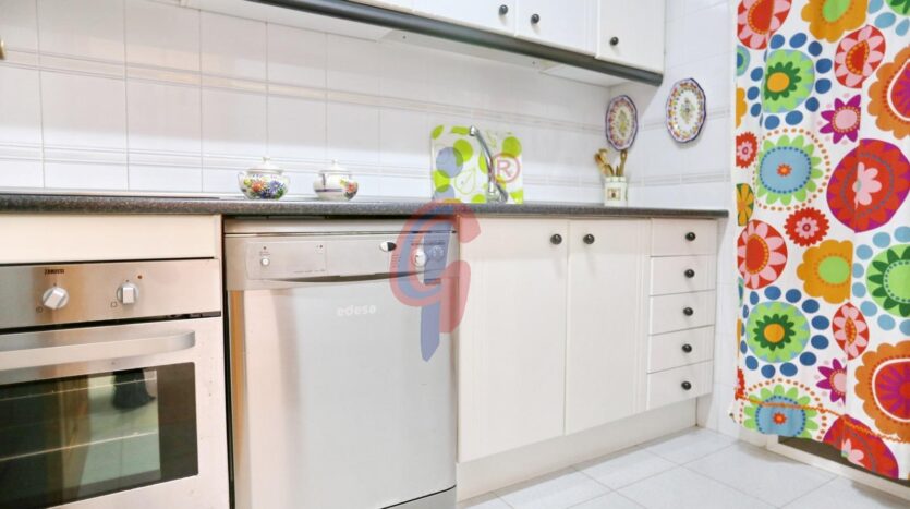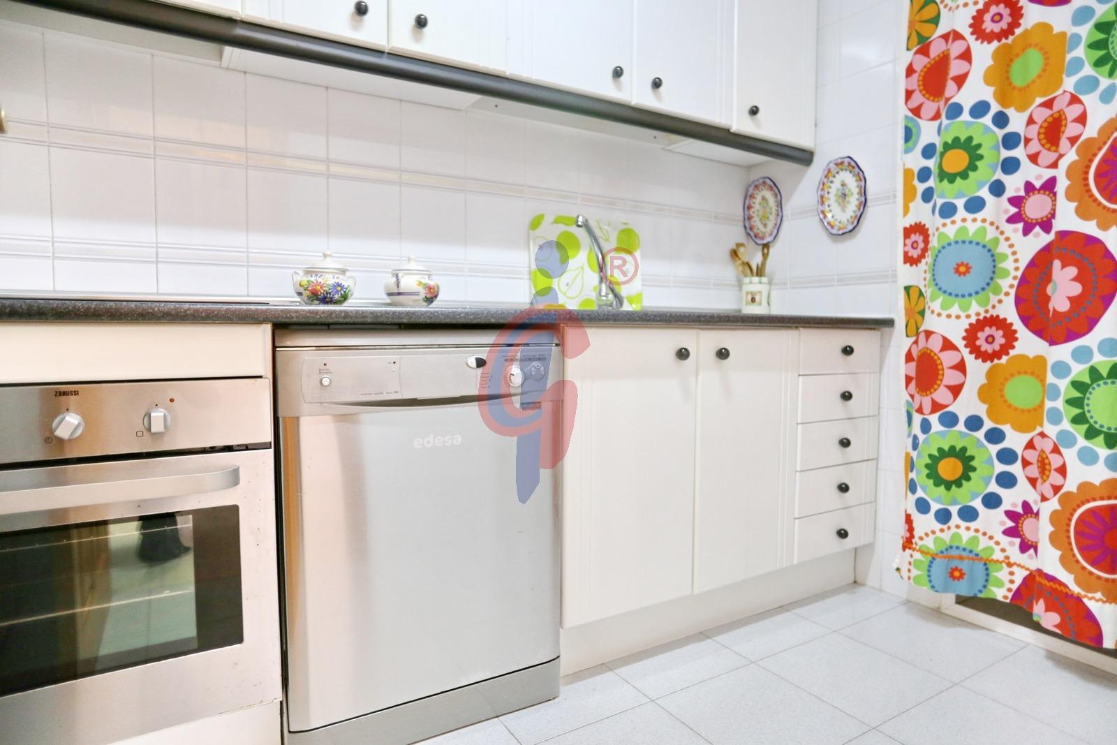 La zona de día está compuesta por un amplio salón-comedor amueblado, que se abre a una generosa terraza con agradables vistas al parque nuevo de Las Viñas y al mar. Junto a esta estancia se encuentra la cocina, de buen tamaño, totalmente equipada y con una práctica galería que alberga el lavadero.