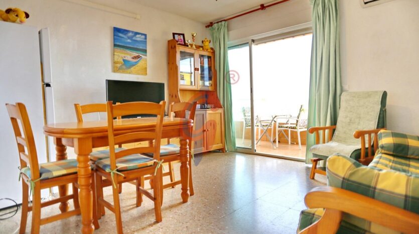 El salón-comedor es amplio y muy luminoso, con acceso directo a una gran terraza en esquina desde la que se pueden contemplar vistas frontales al mar. Su orientación este la convierte en un espacio perfecto para disfrutar del sol de la mañana y del clima mediterráneo durante todo el año.
