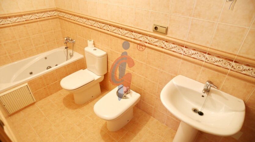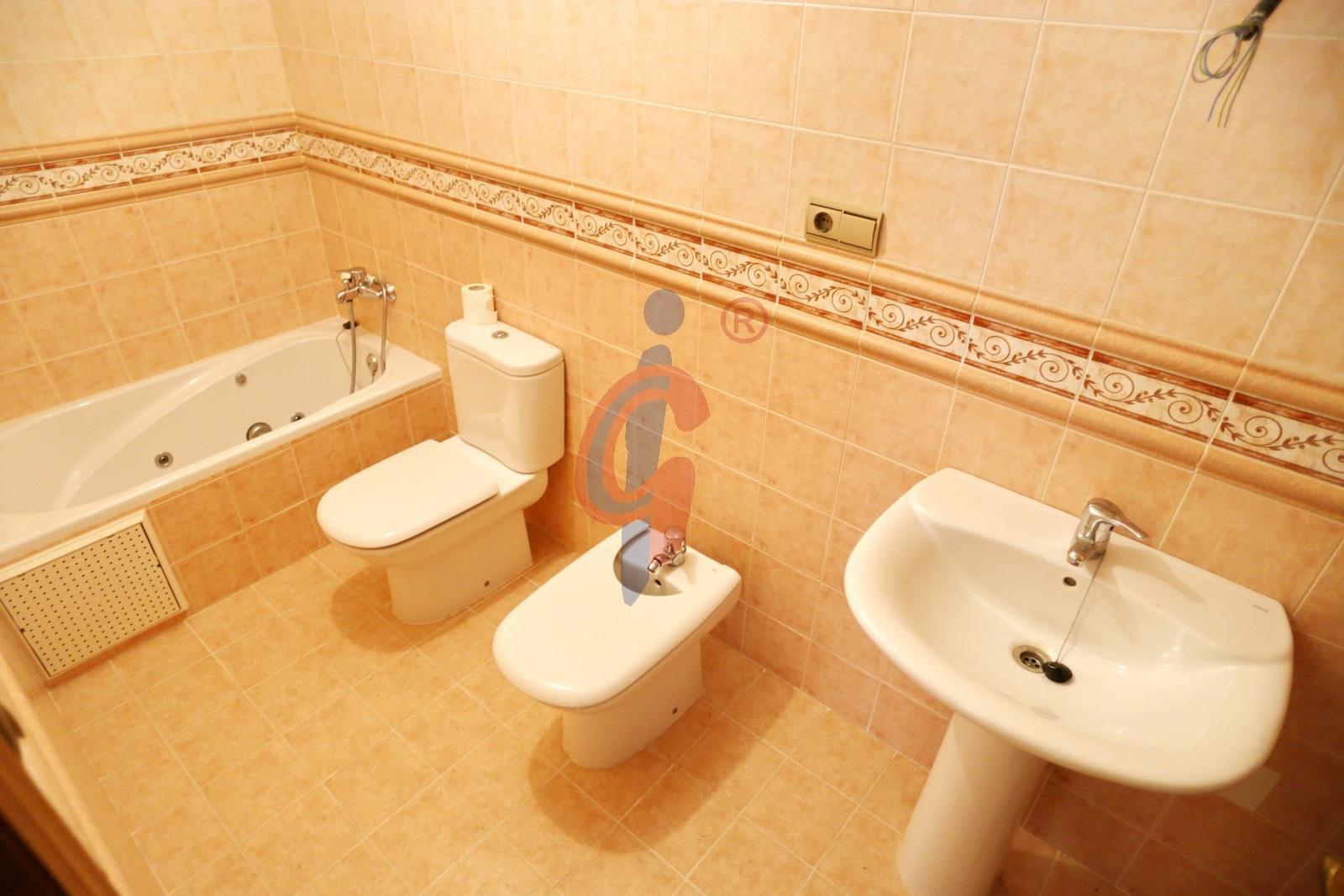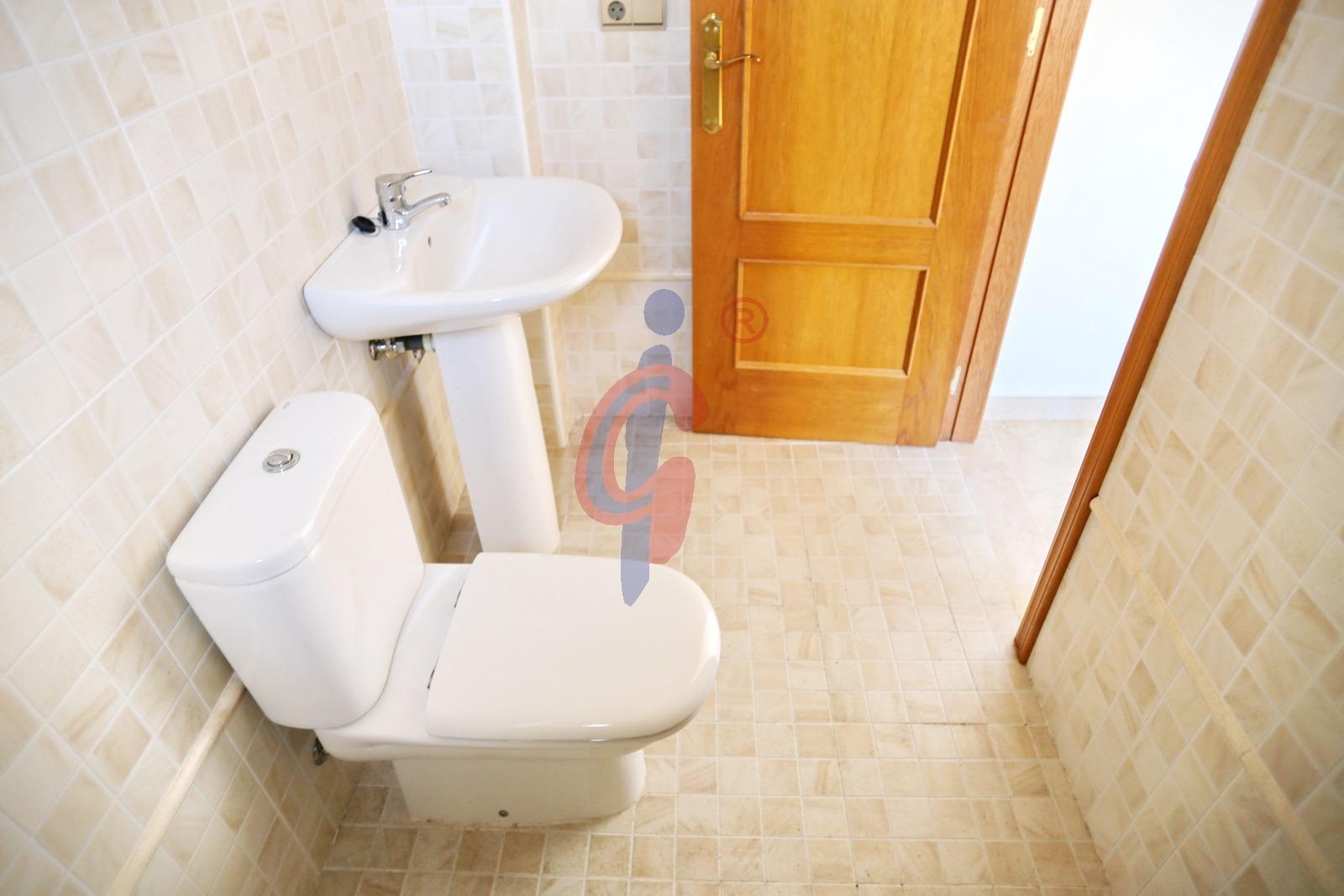 El dormitorio principal es exterior y dispone de baño en suite con plato de ducha y ventana, lo que garantiza una correcta ventilación. La vivienda cuenta además con dos dormitorios adicionales, ambos equipados con armarios empotrados, uno con ventana a la galería y otro con ventana al patio interior. Un segundo cuarto de baño completo con bañera da servicio al resto de la vivienda.