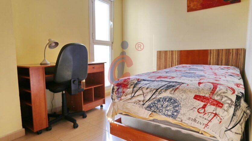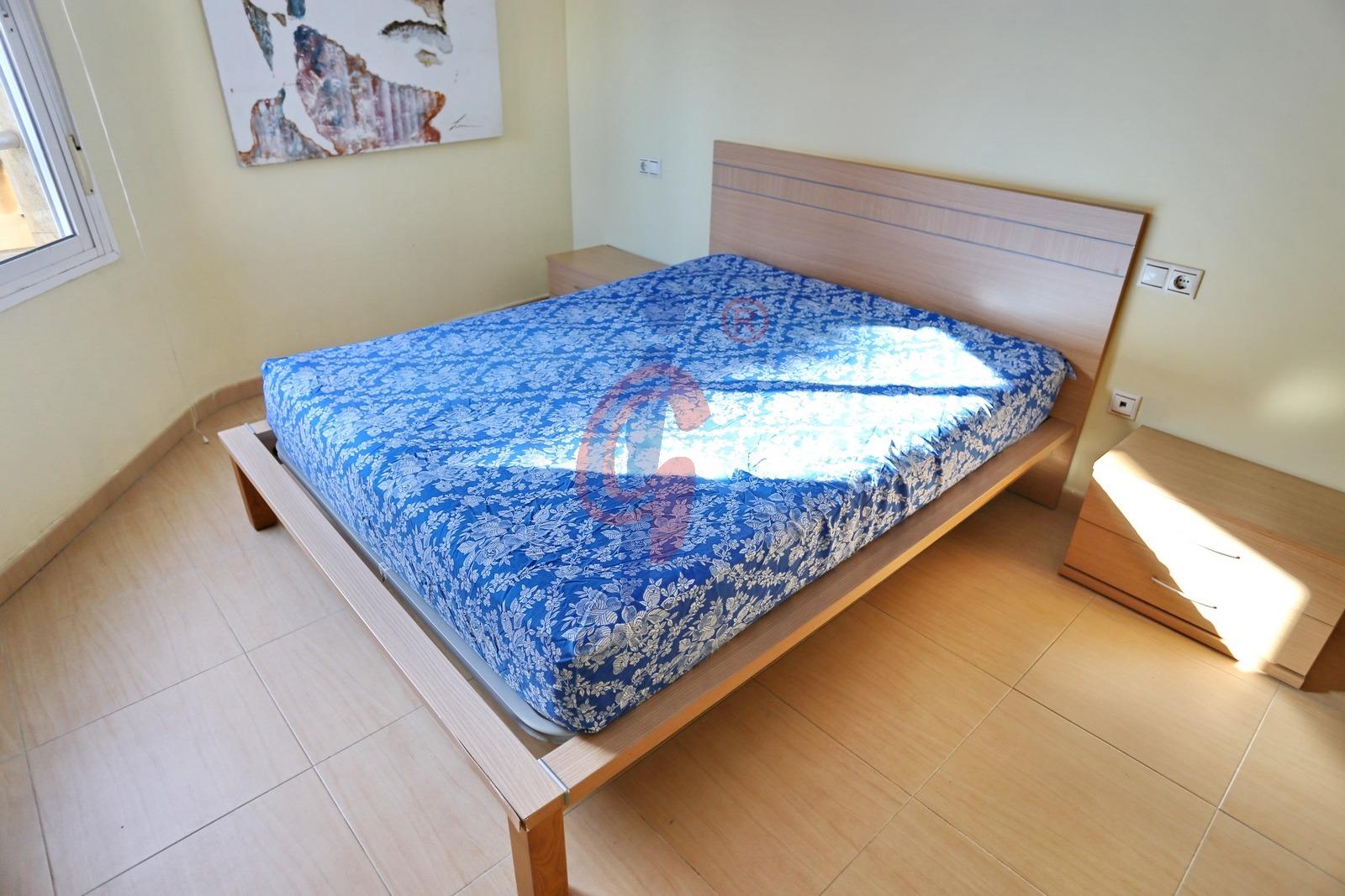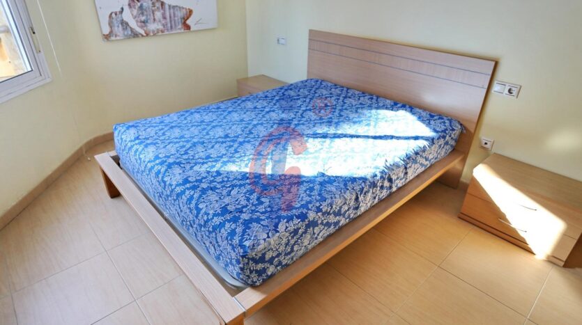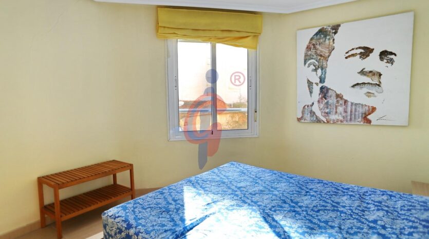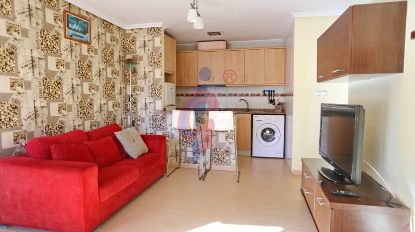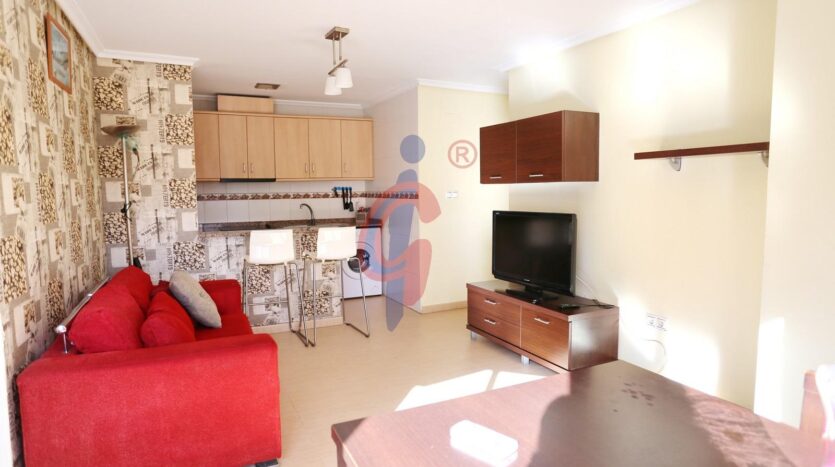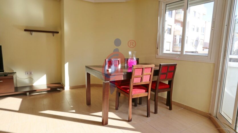 En su interior encontramos dos dormitorios, ambos con armarios empotrados y ventanas a la calle, lo que aporta luminosidad y ventilación natural. El salón-comedor es amplio y funcional, equipado con aire acondicionado tipo split en pared y con acceso directo a un balcón, ideal para disfrutar del clima mediterráneo.
