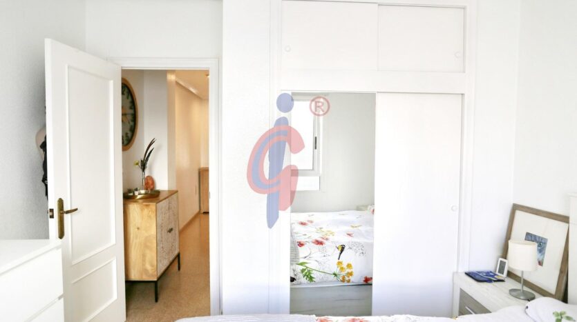 La vivienda dispone de dos dormitorios muy luminosos, orientados al este, ambos con ventanas a patio interior grande y armarios empotrados. El dormitorio principal cuenta además con aire acondicionado split, asegurando confort durante todo el año.
