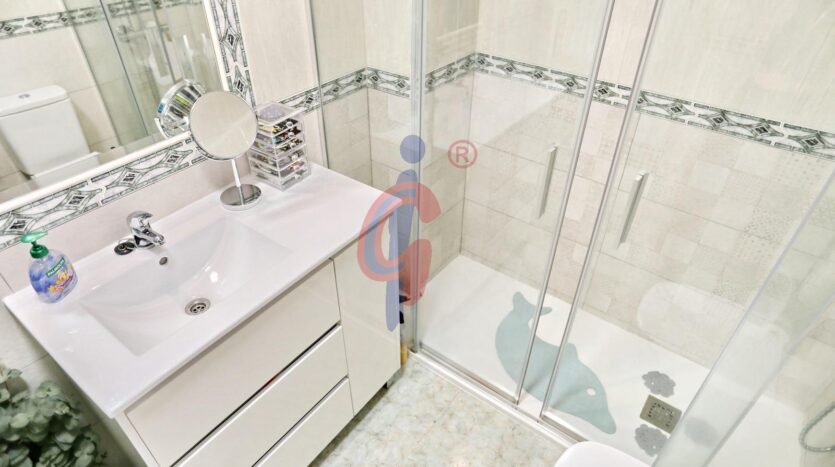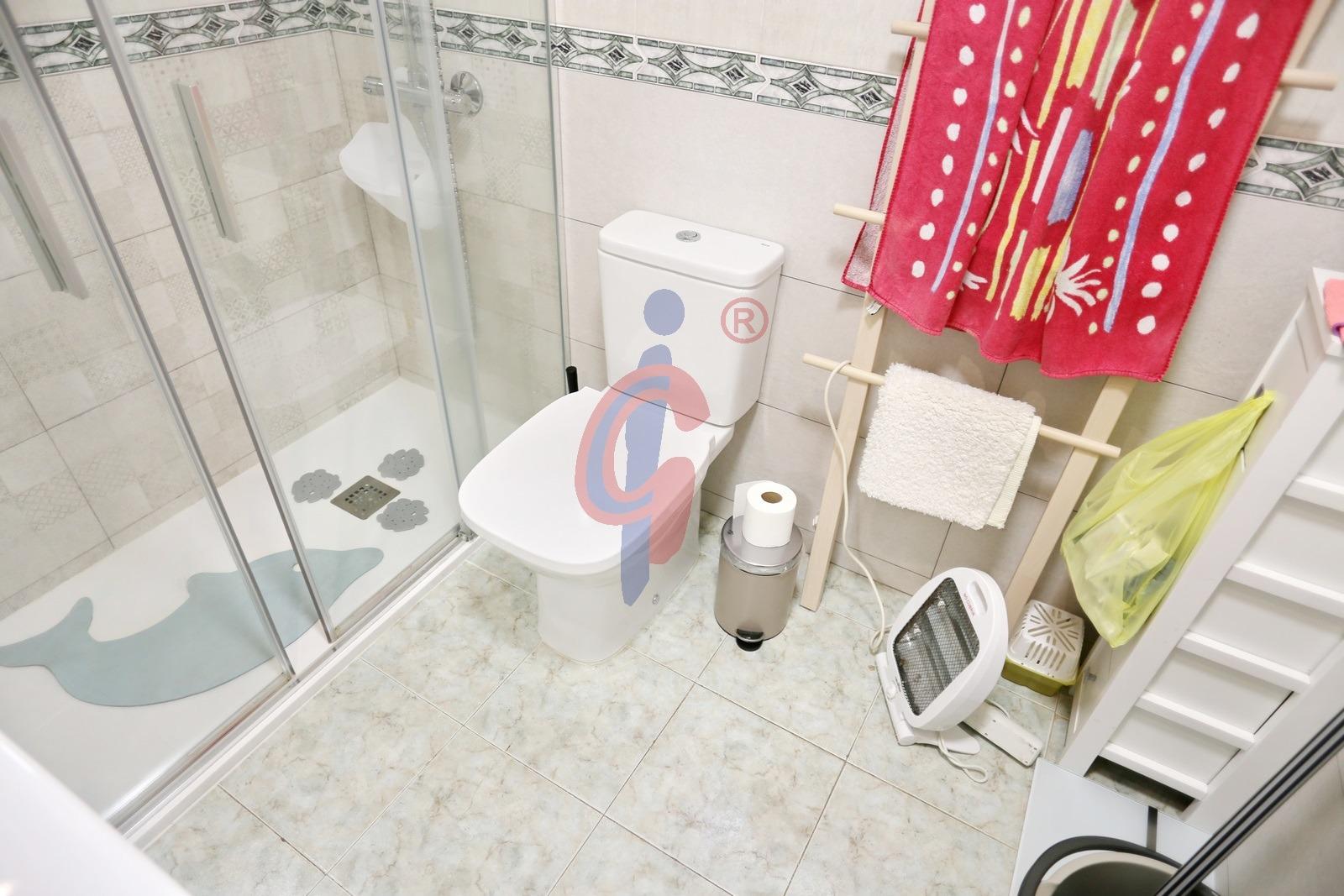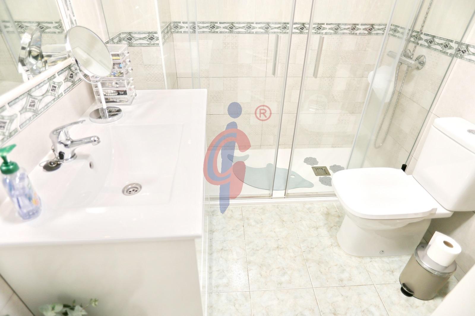 El baño, completamente reformado, ofrece un diseño actual y práctico, con plato de ducha y ventana exterior que permite ventilación natural.