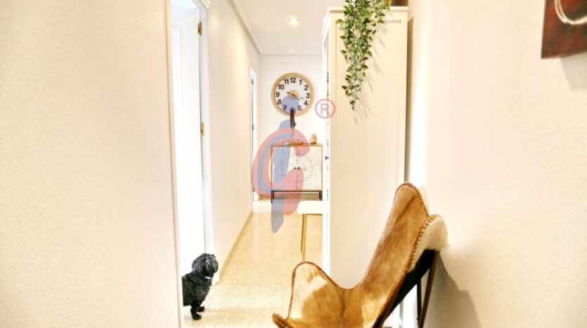 Los pasillos son amplios, aportando sensación de espacio y comodidad en la circulación. Además, la vivienda cuenta con acceso a una azotea comunitaria con vistas al mar donde se encuentra un trastero privado, un valor añadido que ofrece almacenamiento extra y practicidad.
