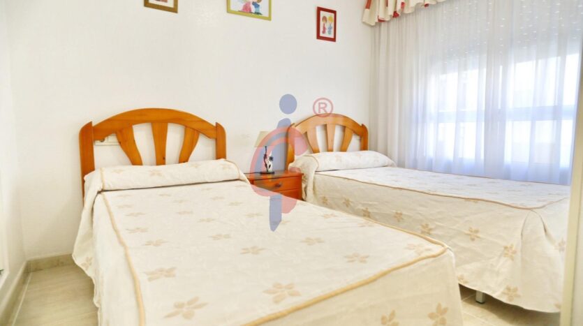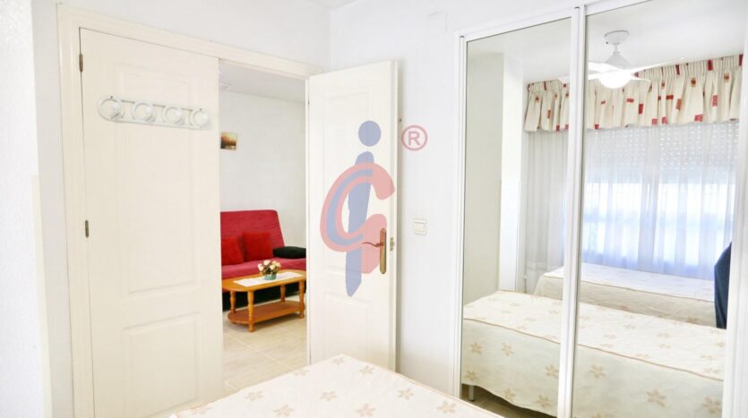 El dormitorio, separado por elegantes puertas dobles, ofrece intimidad sin renunciar a la conexión con el resto del espacio. Con ventana al exterior, dos camas individuales y un armario empotrado, se convierte en un entorno funcional y acogedor, ideal tanto para el descanso como para adaptarse a distintas necesidades.
