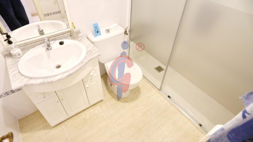 El baño, equipado con lavabo, inodoro y ducha, completa la vivienda con un diseño práctico y pensado para el día a día.