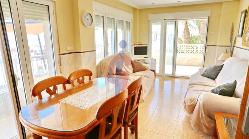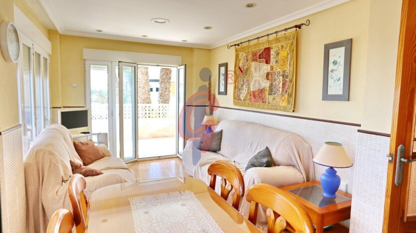 – Luminoso y amplio salón-comedor, completamente amueblado, con múltiples accesos directos a la terraza para vivir el interior y el exterior sin barreras.