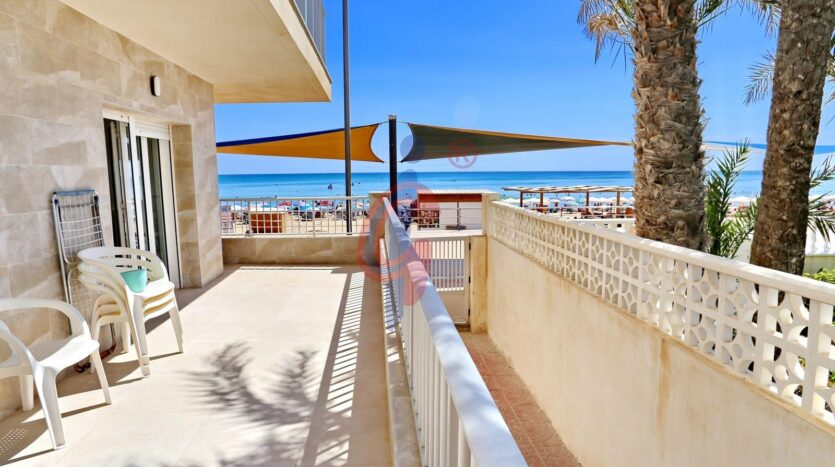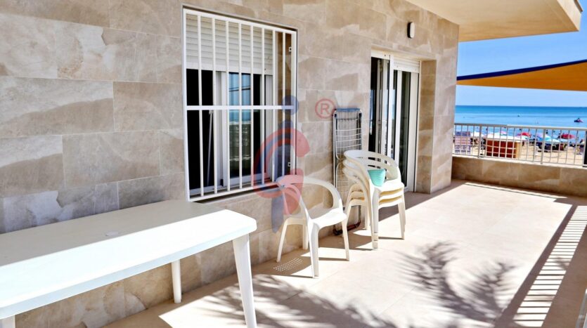 Inmobiliaria CGI te presenta esta exclusiva vivienda en planta baja, ubicada en primera línea de playa, con impresionantes vistas al mar y al paseo marítimo de Guardamar, además de acceso directo a la Playa Centro.