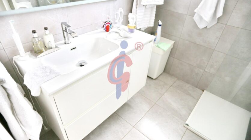 * Baño completo situado entre ambos dormitorios, equipado con plato de ducha y ventana exterior.