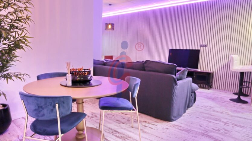 La propiedad, con orientación norte, fue construida en 1996 y ha sido recientemente reformada. Al acceder a la vivienda, nos recibe un sofisticado salón-comedor de concepto abierto, integrado con una moderna cocina equipada con extractor de humos, barra tipo bar, revestimiento decorativo de listones de madera en pared, iluminación LED y suelos laminados, creando un ambiente cálido, actual y acogedor.