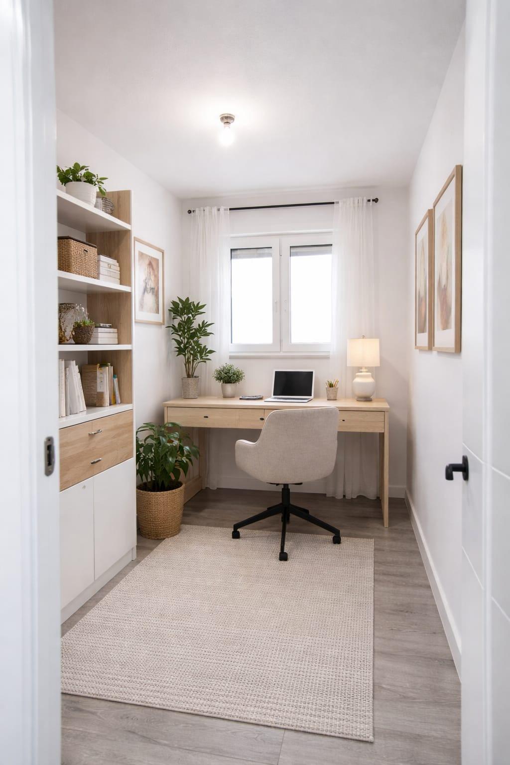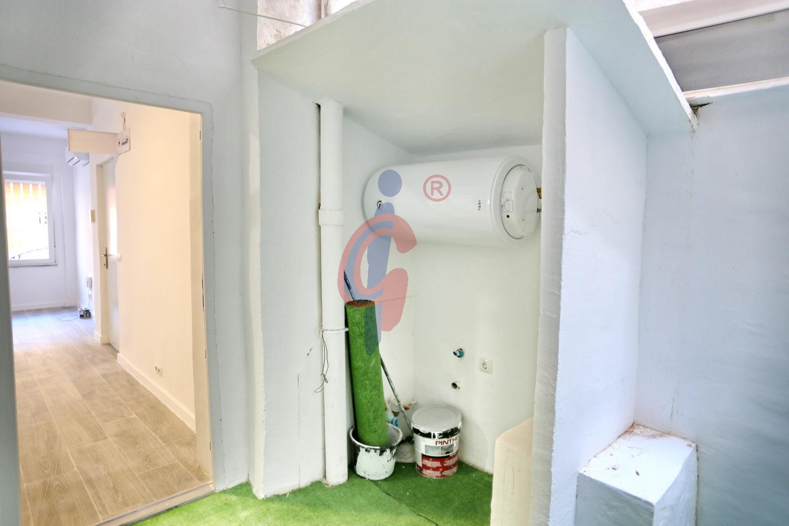 La cocina está integrada en el salón y equipada con extractor de humos, creando un espacio abierto, práctico y acogedor. Desde el salón se accede a un patio interior de uso privado, donde también se ubica el calentador de agua.
