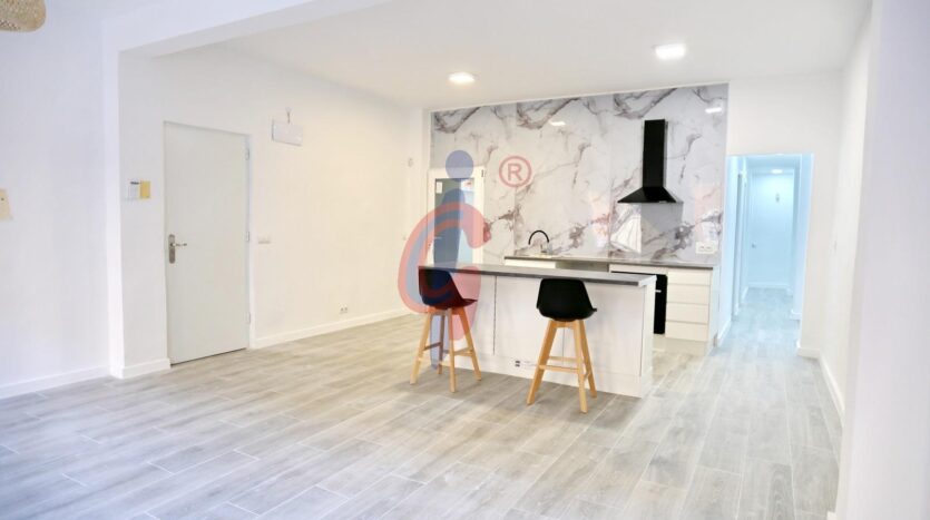 Se trata de una vivienda recién reformada, ubicada en un edificio del año 1965. Al acceder, encontramos un salón-comedor amplio y luminoso con orientación este, que recibe abundante luz natural durante la mañana gracias a sus dos grandes ventanas con vistas a la calle.